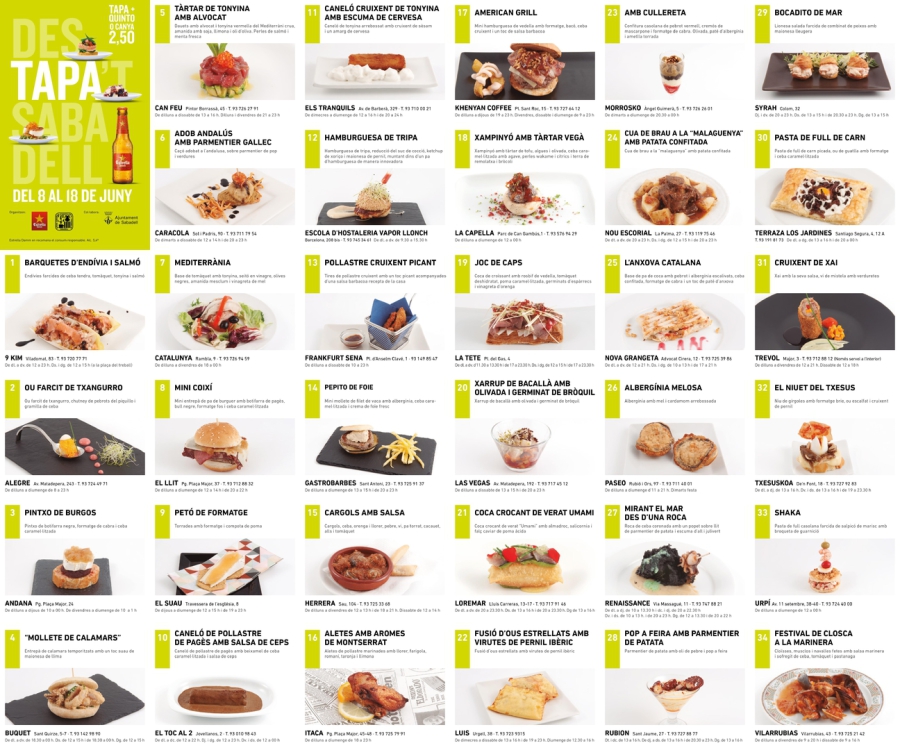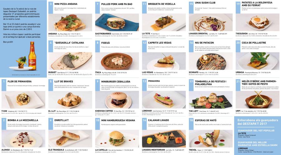 Aquest any 21 establiments de Sabadell tornen a oferir-vos una ruta gastronòmica per la ciutat amb propostes noves i originals per tan sols 2,5€ acompanyades d'un quinto o canya Damm
